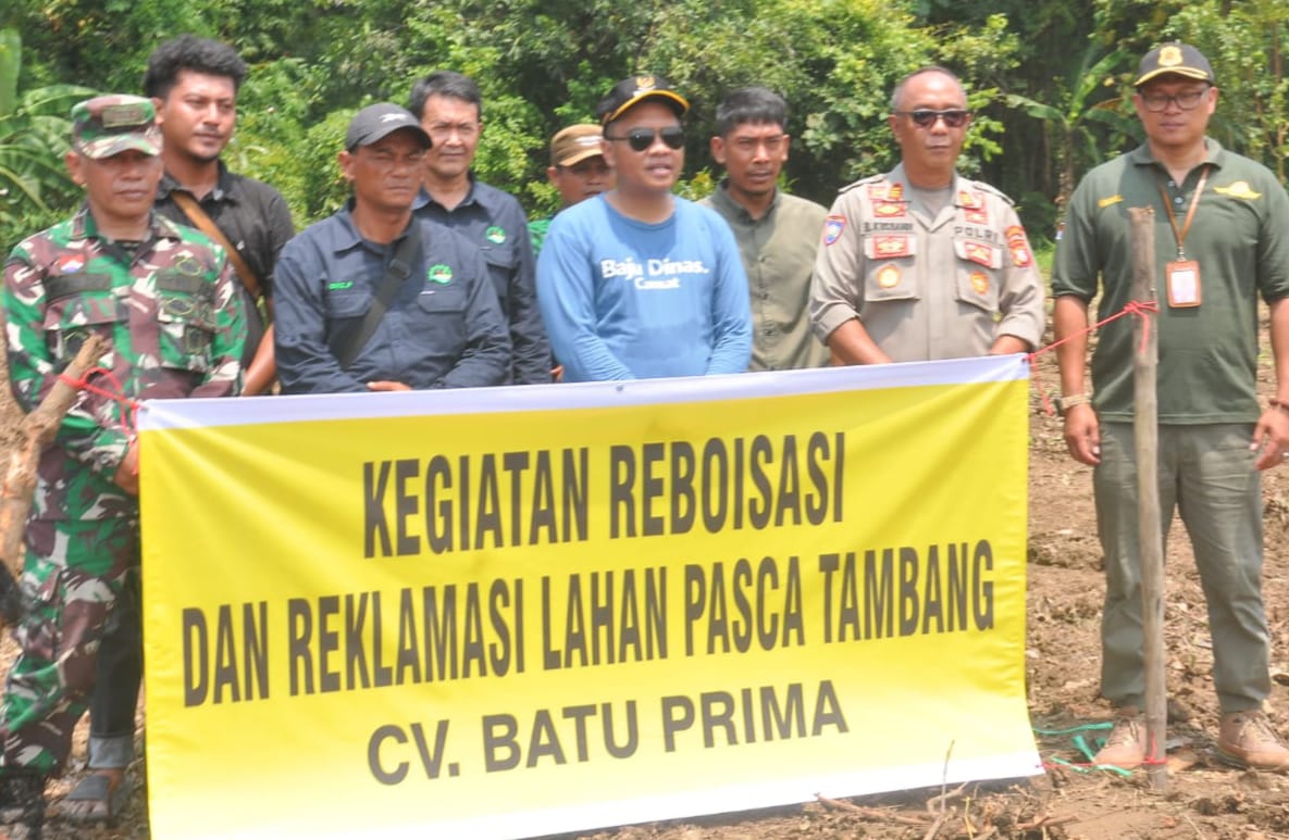 Forum Komunikasi Pimpinan Kecamatan ( Forkopimcam) Tomo Kabupaten Sumedang meninjau langsung lokasi sekaligus melakukan Reboisasi atau penanaman pohon sebanyak ratusan pohon buah buahan dan tanaman keras ditanam di 2000 meter lahan PT Batu Prima desa darmawangi kecamatan Tomo Sumedang, Kamis (10/4/2025).