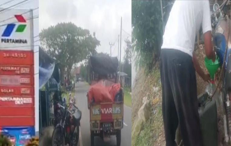 Hingga pembeli pertalite bermotor tersebut keluar masuk menepi di belakang warung sepanjang sungai untuk melakukan aksinya mengeluarkan pertalite dari tangki motor tersebut ke dalam derigen dengan menggunakan selang Di duga mereka penimbun pertalite sala satunya berinisial R.asal panguragan .