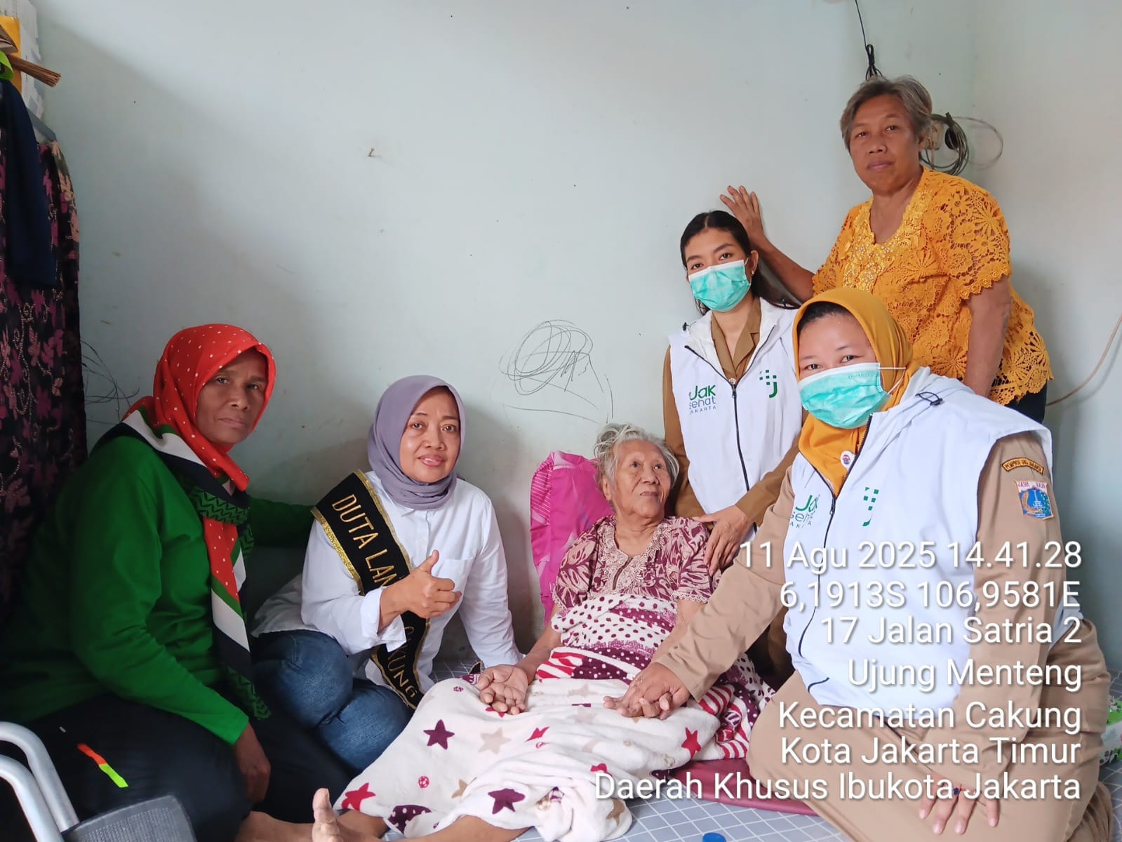 Dalam rangka program 100 Hari kerja Gubenur DKI Jakarta Tim Medis dari Pukesmas kelurahan ujung Menteng kecamatan cakung, Ns. Dian Naya dan Ns. Fitri Hidayati, bersama Duta Lansia dan Kader Puskesmas melakukan kunjungan lansia di wilayah RW 04 Kelurahan Ujung Menteng pada Senin, (11/08/2025)