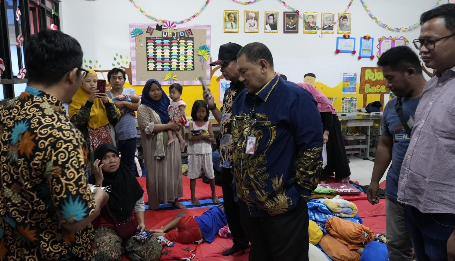 Wakil Walikota Kota Administrasi Jakarta Utara, Juaini mengunjungi pengungsi dampak hujan besar di Kelurahan Sukapura, Kecamatan Cilincing, Kamis (30/1/2025). Sebanyak 24 kk mengungsi di SDN 02 Sukapura.